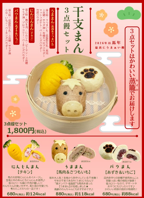 今年は午(うま)をイメージした”うままん”をご用意しました♪
