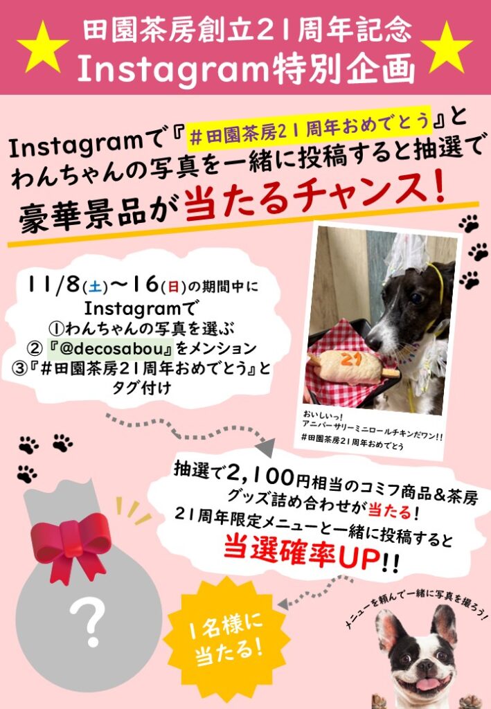 Instagramで『#田園茶房21周年おめでとう』と投稿し